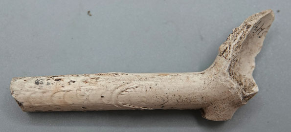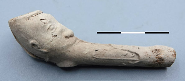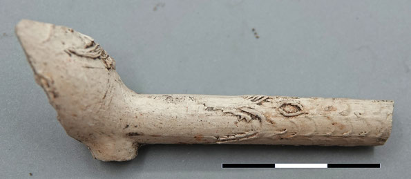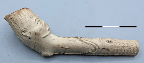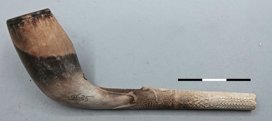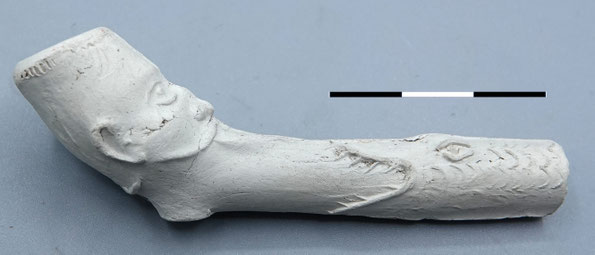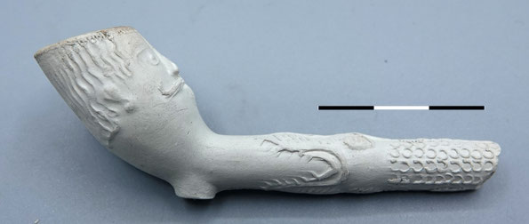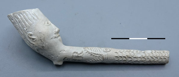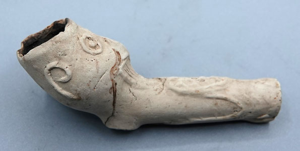 Bovenstaande pijp is waarschijnlijk van Duitse makelij, en stamt uit de 18e of vroege 19e eeuw.