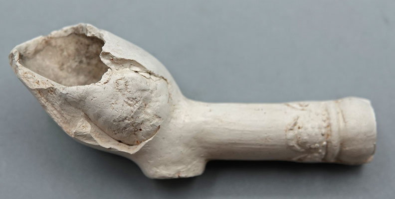 12/3; Gouds pijpje uit de vroege 18e eeuw met fraai getordeerde steel