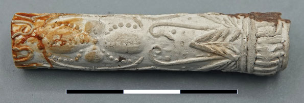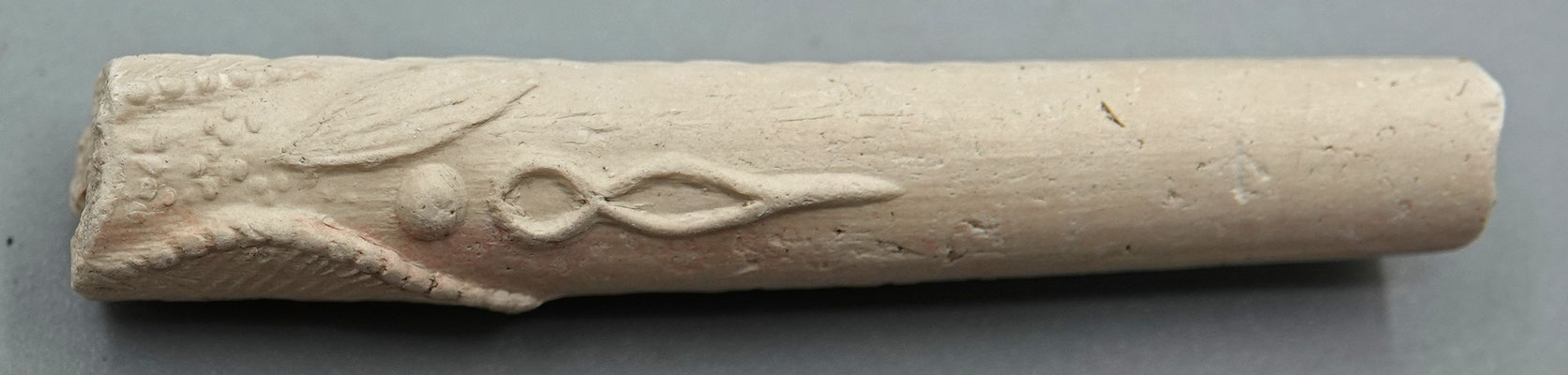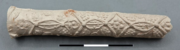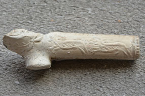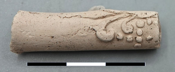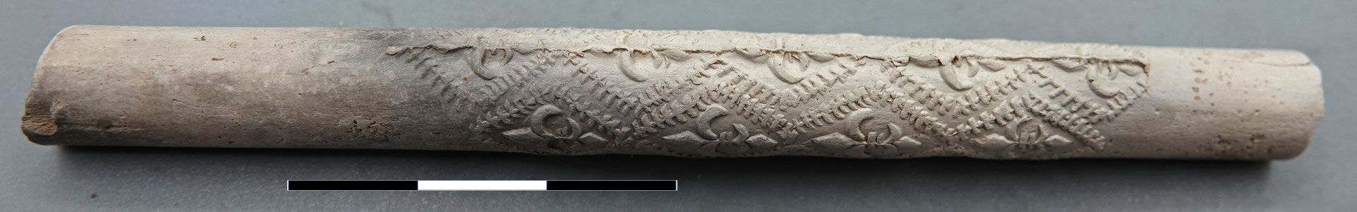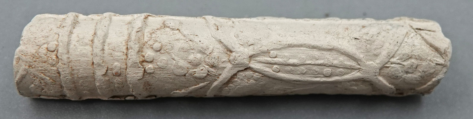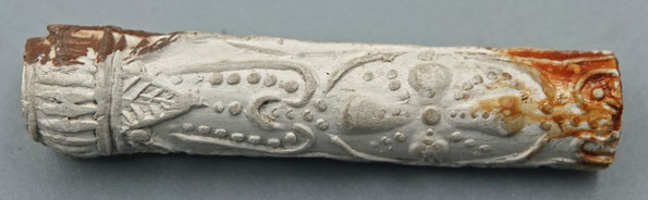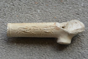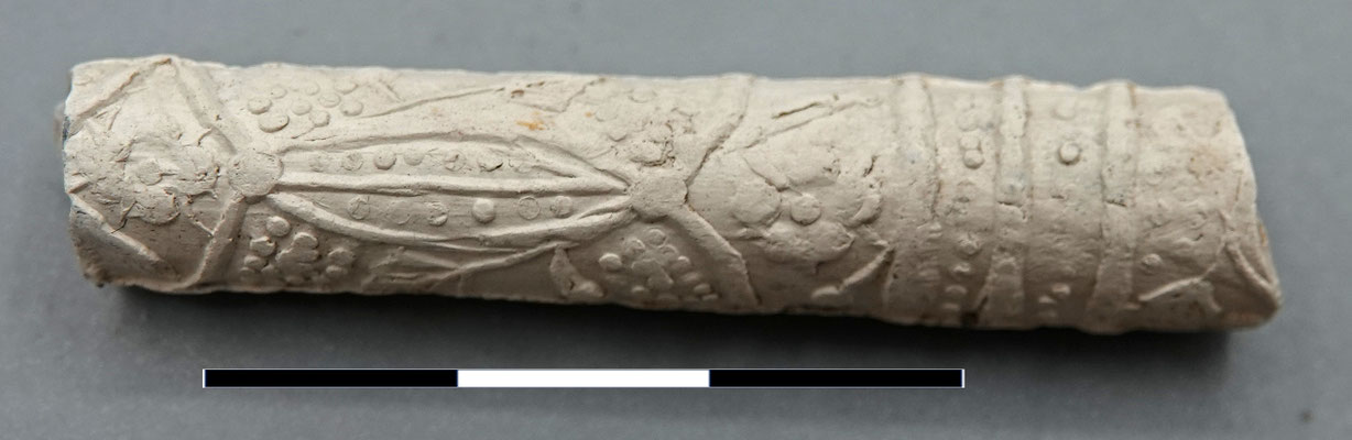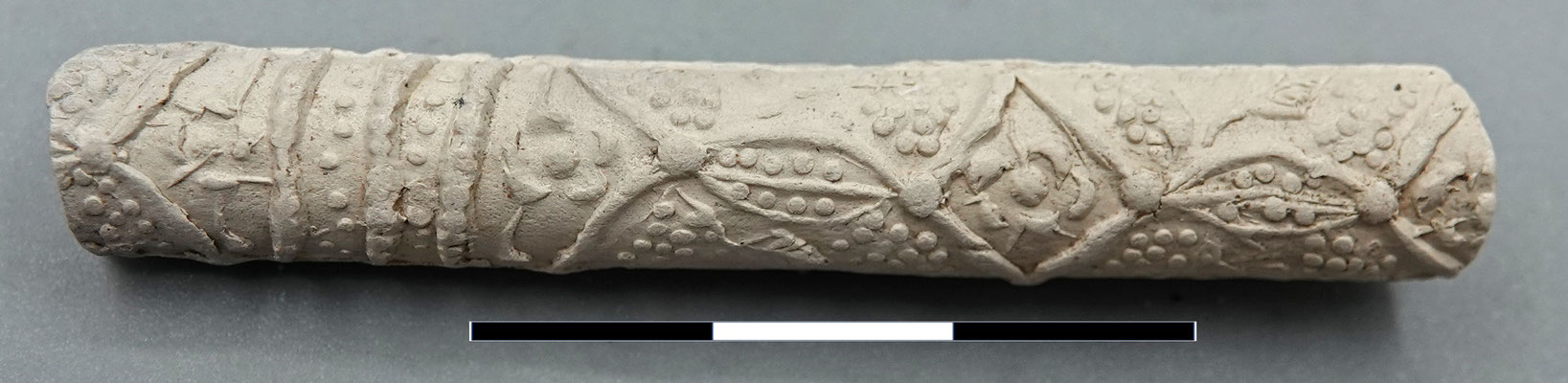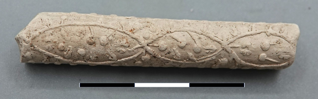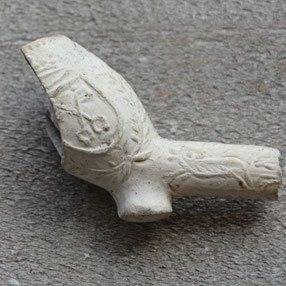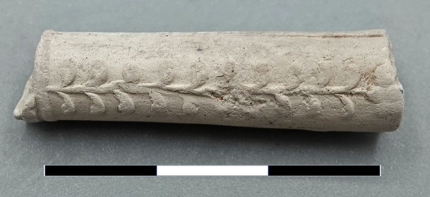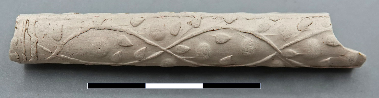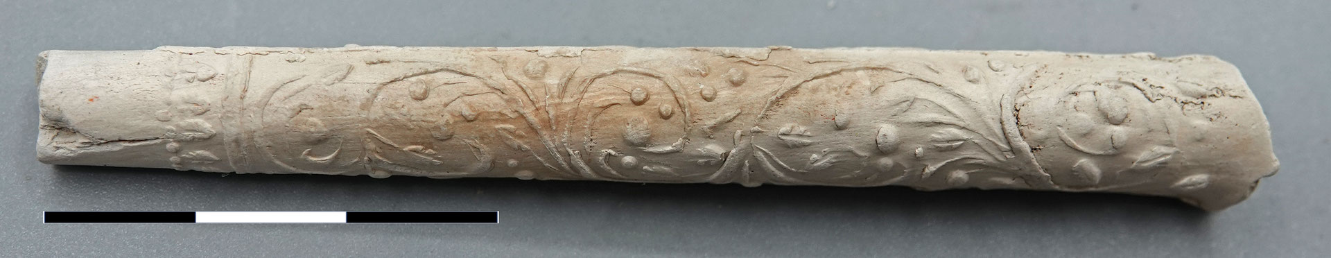 De 17e eeuwse Leidse pijpenmakers versierden sommige van hun producten uitbundig. Het wapen van Leiden (de gekruiste sleutels) waren een populair thema maar ook een schenkkan en roemer. De stelen werden vaak versierd met afbeeldingen van rennende dieren (honden).