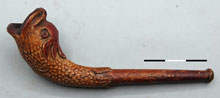 Catalogus nummer 468, Vlieg. De steel van dit pijpje is ca 14 cm. Deze vlieg, was als 'mouche' met name bij onze franse en ook belgische zuiderburen een geliefd thema. Bij het graven in frankrijk, in de stort van Gambier, heb ik een enorm aantal (vorm) varianten gevonden waaruit de enorme populariteit blijkt.