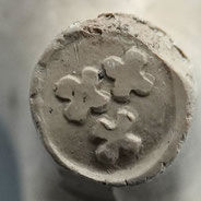 Als hierboven, gemaakt en gevonden in Alphen/Aarlanderveen, deze uitvoering heeft een wapenschild dat op het Wapen van Gouda lijkt maar het niet is: op de middenbalk zijn 3 extra stippen aangebracht.
