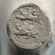 Hieronder een wat vreemde grospenning, met aan de ene zijde het merk ABC en op de andere zijde het wapen van Friesland. Geen van beide merken is gelijktijdig bij 1 en dezelfde pijpmaker in gebruik geweest volgens (ref *14). Echter, de pijpmaker Salomon van der Vin in Gouda heeft tussen ca 1788 en 1793 het merk ABC gebruikt, en tussen ca 1802 en 1814 het merk 'Wapen van West Friesland'