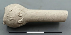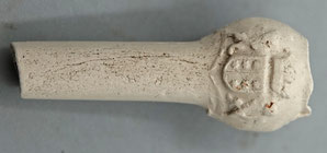 Knop van een zogenaamde elleboog of omgezette polka pijp. Waarschijnlijk Gloudt Houtam of Van der Want.