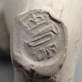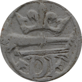 Het merk DF met daarboven een trompet en een kroon wordt toegeschreven aan Daniel Fransz. Huijs uit Rotterdam. In 1628 blijkt hij trompetter van beroep te zijn, en 2 jaar later wordt hij als pijpmaker vermeld (ref *23). Hij heeft waarschijnlijk tussen ca 1630 en 1650 pijpen gemaakt.