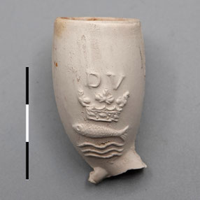De initialen D V zijn in het begin van de 19e eeuw in Gorinchem gebruikt en worden toegeschreven aan de pijpenmaker Dirk Valke die tussen circa 1807 en 1829 actief was (ref *22-22a). Van zijn hand zijn eenvoudige kleipijpen bekend met de afbeelding van een gekroonde vis op de ketel en daarboven de initialen DV.
