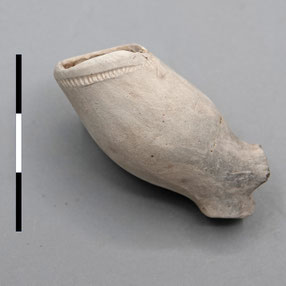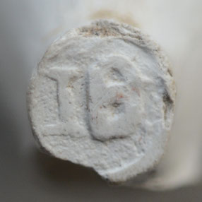 De letters I en B aan weerszijden op de zijkanten van de hiel. Gevonden in Utrecht, mogelijk daar, in Schoonhoven of in Gorinchem gemaakt