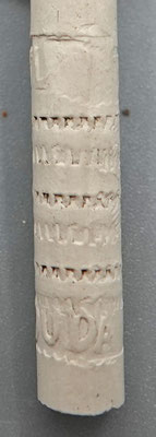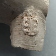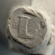 Hoewel het merk meer op een I dan een L lijkt, hou ik het op het laatste ; de kop is zo enorm groot dat de datering ergens in de 19e eeuwe ligt ; het merk I werd tot 1760 gebruikt. Vindplaats Gouda