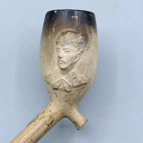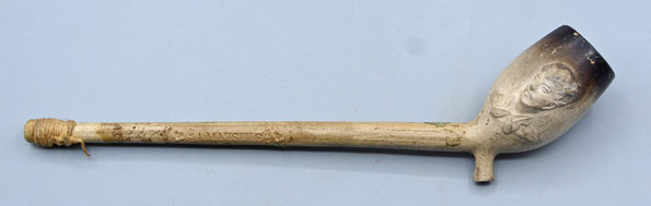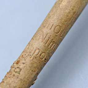 De pijp is gemerkt met een bandstempel op de steel 'Nihoul a Nimy, Depose' en in de hiel is het merk P gestempeld. Deze pijp zal tussen 1886 en het begin van de 20e eeuw gemaakt zijn.