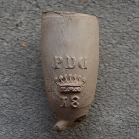 Onbekend is of het merk PDO gebruikt is en of onderstaand pijpje inderdaad het merk PDO draagt. Voorlopig houd ik het er wel even op, waarschijnlijk Schoonhoven of Utrecht, ca 1760-1790. Het merk PDO is niet bekend, het merk PDG wel ; in Utrecht was een pijpmaker met de naam Pieter de Graaff actief tussen ca 1750 en 1793 (ref *3)