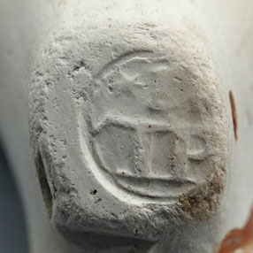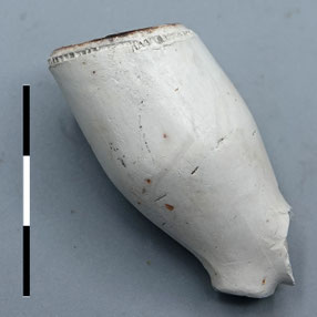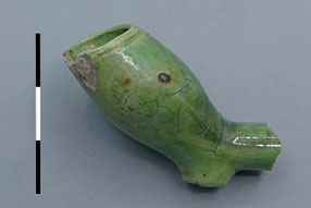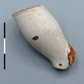 Pijpje gevonden in Den Haag. Tussen ca 1660 en 1680 gemaakt door de Goudse pijpmaker Thiel Jansz Proost (ref *14)