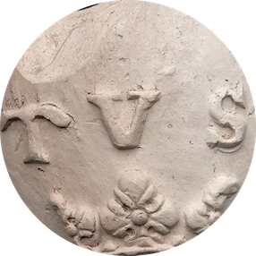Pijpje uit de periode tussen 1715 en 1745, met de voor Schoonhovense pijpenmakers typerende drie stippen op de contra zijde van de ketel. Waarschijnlijk door Teunis van Son Senior.