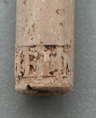 In Gouda waren tussen ca 1733 en ca 1820 diverse pijpenmakers met de naam Van der Helm actief. Mogelijk dat de letter T. voor (Ma)T(hijs) van der Helm staat die tussen 1736 en 1815 actief was. Hij gebruikte ook de merken VH gekroond, PLK en Liggende Leeuw.