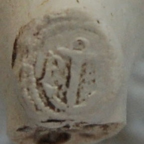 Het merk Anker met P en waarschijnlijk nog een tweede, helaas onleesbare letter, is niet bekend. Onderstaand pijpje is gevonden in Goudse stadsstort uit ca 1690-1720.