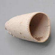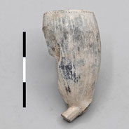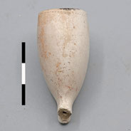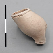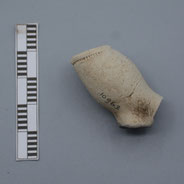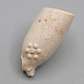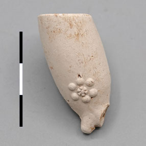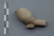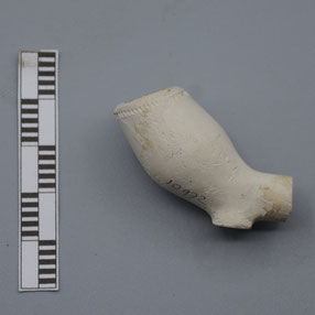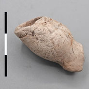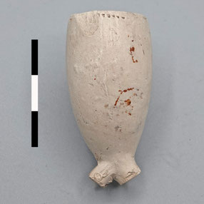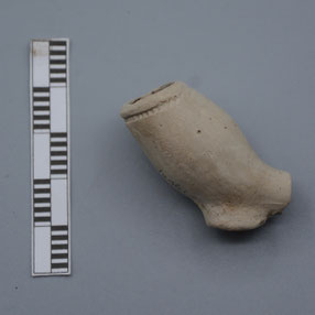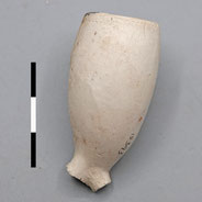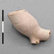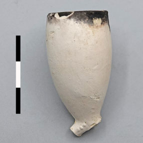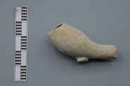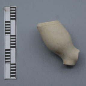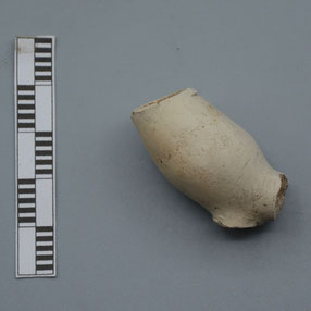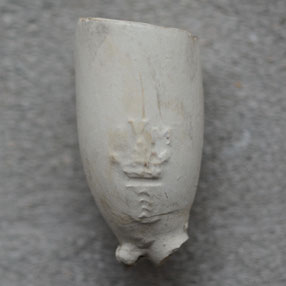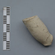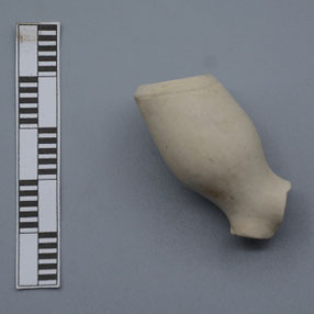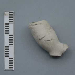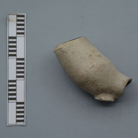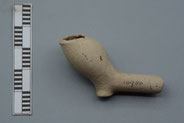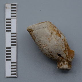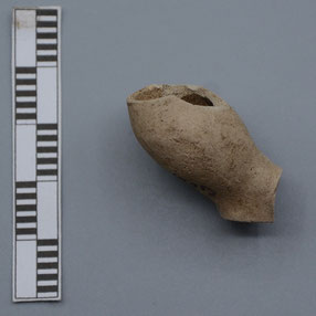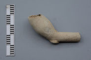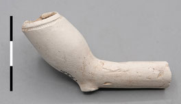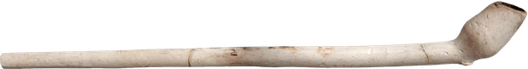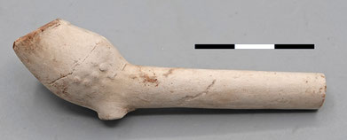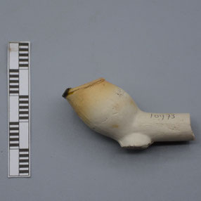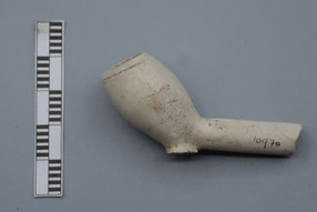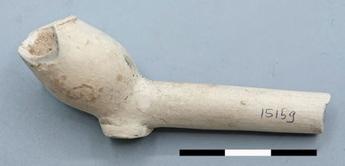 Ongemerkte pijp met enigszins ingedeukte ketel aan de voorzijde, toch gerookt. Circa 1650-1670, gevonden in Delft.