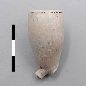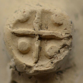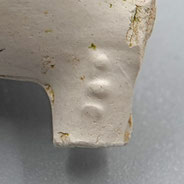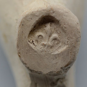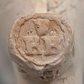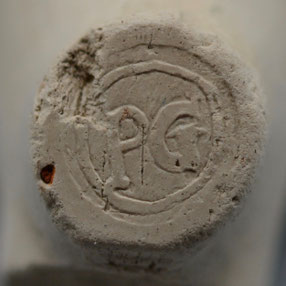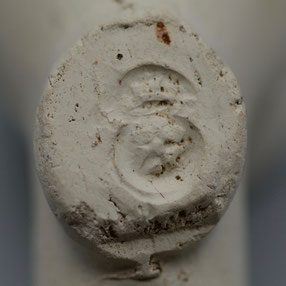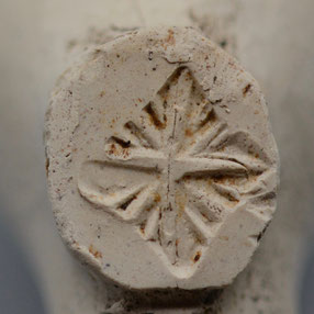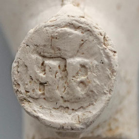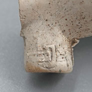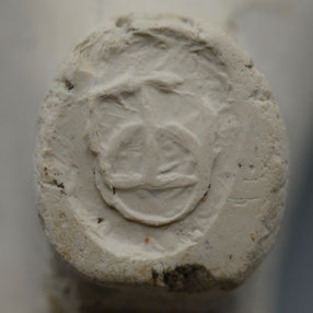 Een wat apart uitgevoerd merkstempeltje op een relatief kleine ketel. Beide exemplaren zijn gevonden in Delft.