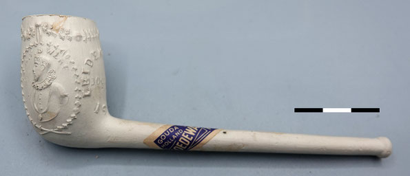 Een 3 oktober pijp met het model van een zogenaamde Izabe. Gemaakt door een onbekende fabrikant, waarschijnlijk tweede helft van de 19e eeuw. Gevonden in de omgeving van Papenburg.